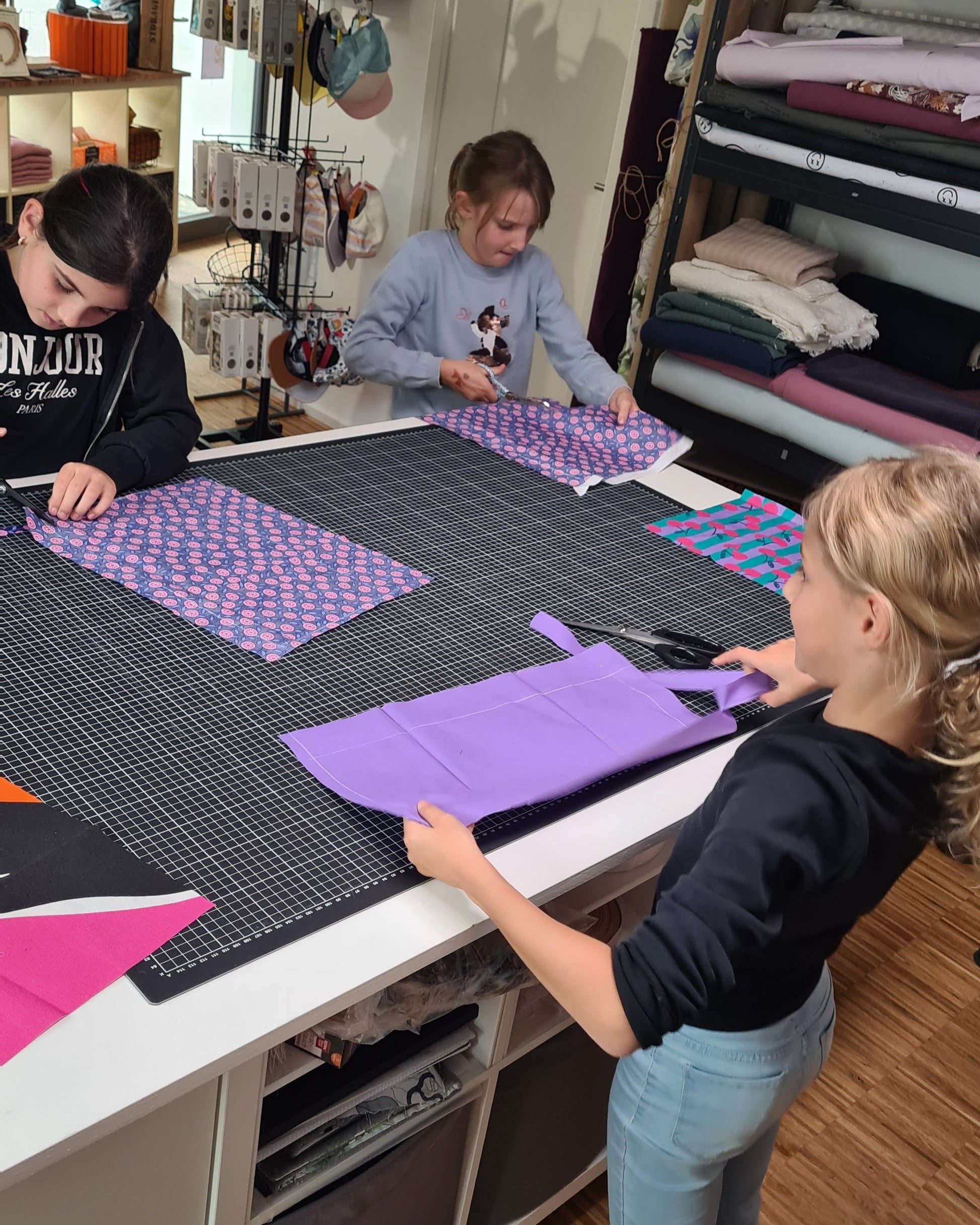 Alles, was dein Kind zum Nähen braucht – Stoffe, Garn, Nadeln, Scheren und weiteres Zubehör – ist im Kurspreis enthalten.