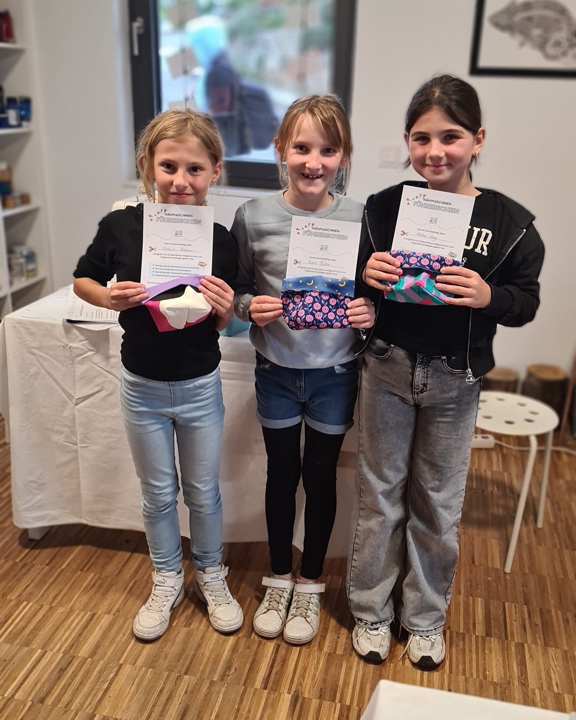 Am Ende des Kurses erhält jedes Kind den Nähführerschein als Urkunde, die seine neu erworbenen Fähigkeiten bestätigt.